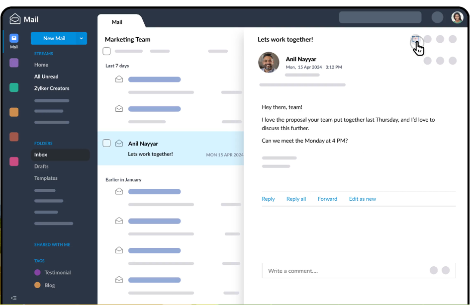 Zoho is another affordable but reliable email hosting service for businesses. It offers custom domain email, team collaboration tools, and a clean interface that even non-technical teams can understand easily.