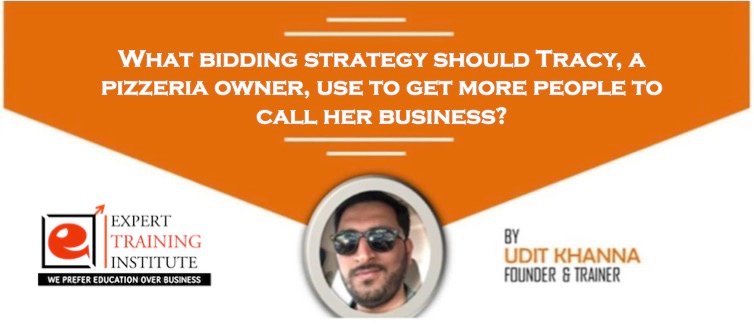 What bidding strategy should Tracy, a pizzeria owner, use to get more people to call her business?